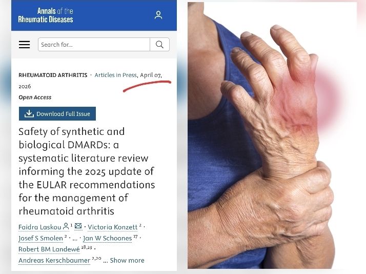 Laskou F, Konzett V, Smolen J et al. Safety of synthetic and biological DMARDs: a systematic literature review informing the 2025 update of the EULAR recommendations for the management of rheumatoid arthritis. Annals of the Rheumatic Diseases, 2026; 0